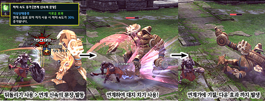 Surement tout les Berserker connaissent le "combo" Frappe étourdissante > Ecrasement. Eh bien il est désormais un combo à part entière car, à la manière du Slayer, le skill Ecrasement profitera d'une augmentation de vitesse d'execution si utilisé après Frappe étourdissante.