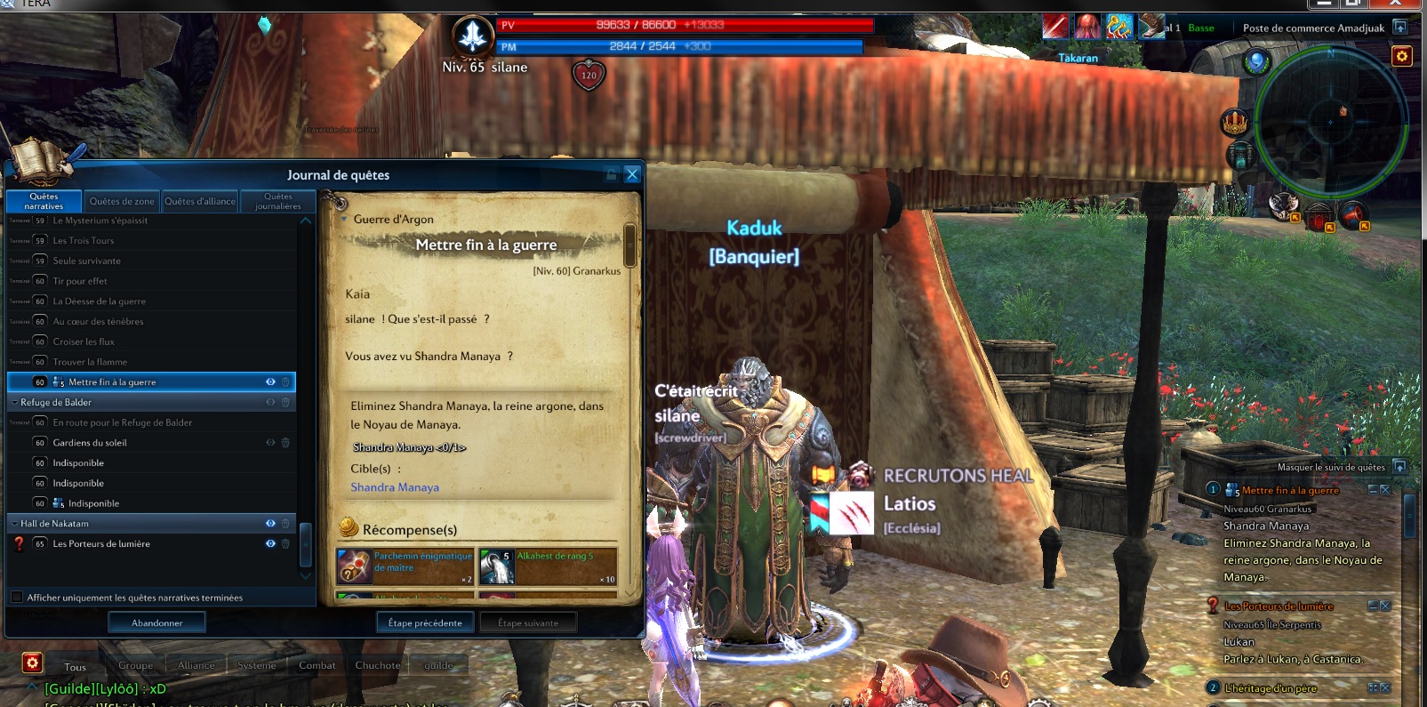 et j ai pris un screen mais n arrive pas a le rentré ...en gros c est marquer eliminer shandra manaya la reine argone dans le noyau de manaya