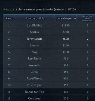 classement CROISADE : SAISON 6 achevée le mercredi 12 août 15 -