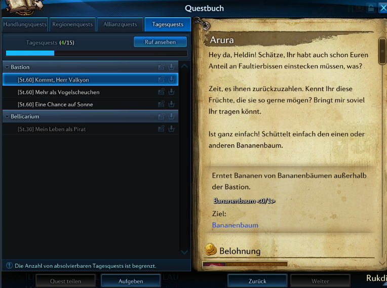 Heute konnte ich 3 TQs für das Vermächtnis von Hyderad annehmen und diese 3 auch abgeben obwohl ich erst auf der Stufe Wankelmütig bin.