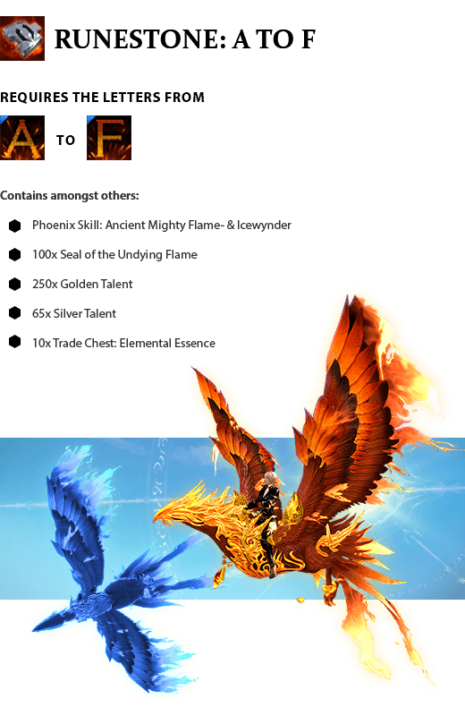 The ancient mighty phoenix skills give you the passive effects Blazing Aura and Phoenix Avatar, which has a chance to increase your Crit Power against monsters by 2 times for 6 seconds, as well as revive you once every hour!