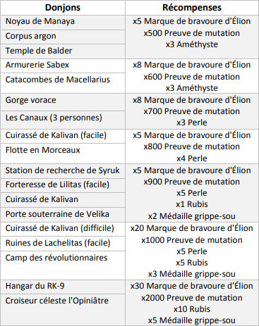 - Les récompenses de certains donjons existants sont ajustées aux nouvelles compétences d'éveil.