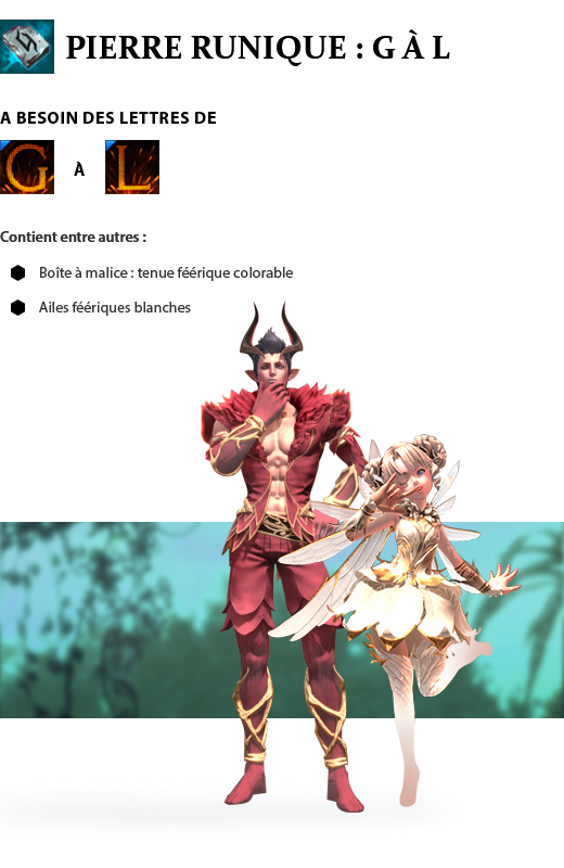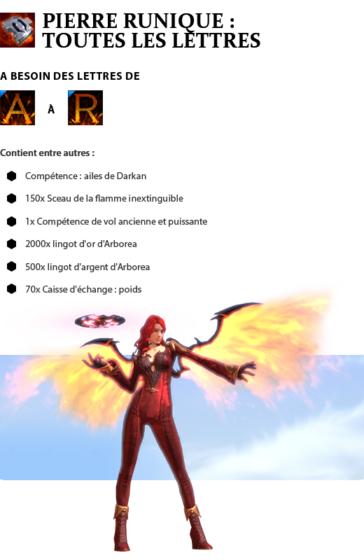 Vous pouvez acheter, auprès du marchand de l'Initiative de l'avant-garde, toutes sortes de pierres runiques que vous pouvez utiliser pour transformer une combinaison de lettres données en récompense.