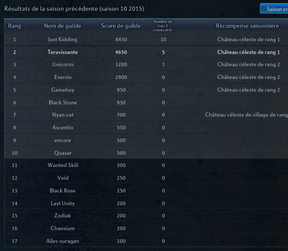 > Ligue Challenger : les 15 premières guildes classées en fin de saison 10 beneficient de leur Sky fortress au dessus d'Allemantheia ou de la région aux alentours de Velika :