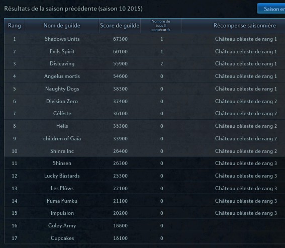 > Ligue Coupe-Gorge : les 5 premières guildes classées en fin de saison 10 beneficient de leur Sky fortress au dessus de Velika :
