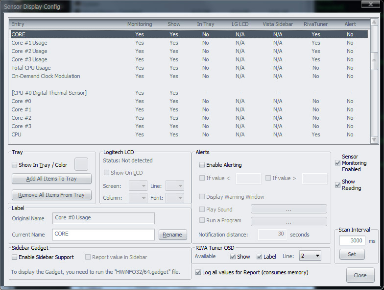 „Sensor Monitoring Enable“ und „Show Reading“ „Scan Interwal“ 3000ms und klickt auf set.