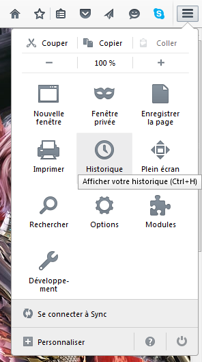 Cliquez sur le bouton permettant d'ouvrir le menu et allez dans la partie Historique: