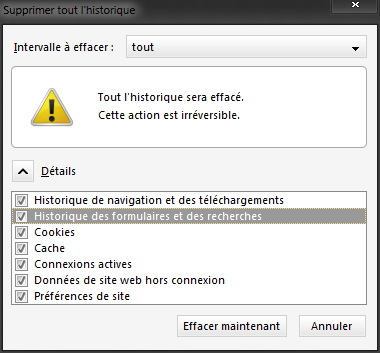 A partir de là, vous pouvez tout cocher et mettre 'tout' dans l'intervalle à effacer. Il ne reste plus qu'à cliquer sur 'Effacer maintenant' et le tour est joué!