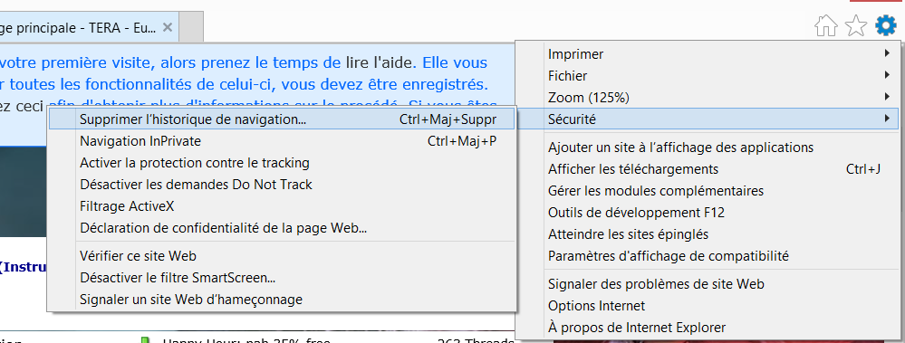 Cliquez sur le bouton permettant d'ouvrir le menu et allez dans Sécurité > Supprimer l'historique de navigation :