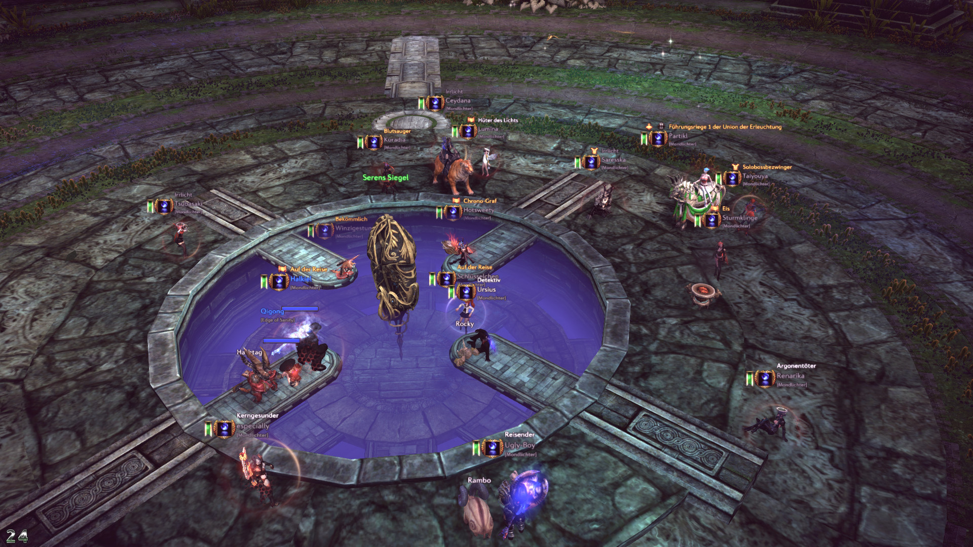 • Ja, wir sind diesen Content wieder aktiv dabei. Aktivität (Runde 15 Mann in der Woche, 20 am Wochenende) ist für den aktuellen Content gegeben und wir stocken weiter auf, wenn dies Sinn ergibt. Es wird keine Aufnahmesperre geben. Stattdessen selektieren wir durch oben genannte Kriterien. Wir differenzieren uns von Massengilden durch qualitativ hochwertige Verwaltung, Events, Aktivität, Diskussionen und sonstige Aktivitäten (s.o.).